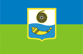 Щит з золотою каймою перетинає хвиляста лінія. Знизу на блакитному фоні золота козацька порохівниця, історія нашого міста. Зверху на сріблястому фоні – золота реторта (хімічна колба) – символ хімічної промисловості, та одночасно символічна цифра 6 (шоста притока річки Десна), всередині – чорною лінією кільцеподібна спіраль у вигляді намотаної плівки на бобину, графічно вирішеної як механічна шестерня. ПРАПОР МІСТА